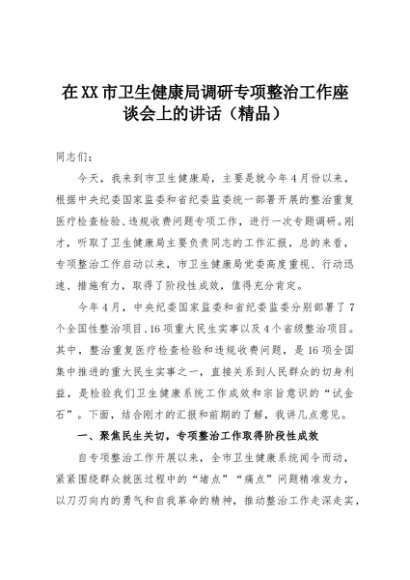 【七哥公文】2025年:在XX市卫生健康局调研专项整治工作座谈会上的讲话(精品)+更多免费公文+VX:QiGeGongWen2024