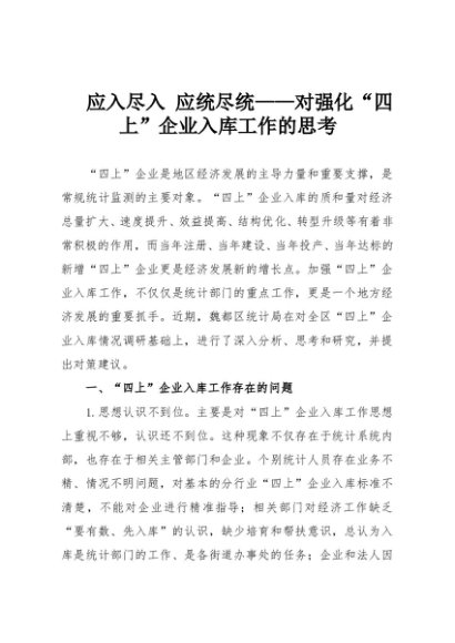 【七哥公文】2025年:应入尽入 应统尽统——对强化“四上”企业入库工作的思考+更多免费公文+VX:QiGeGongWen2024