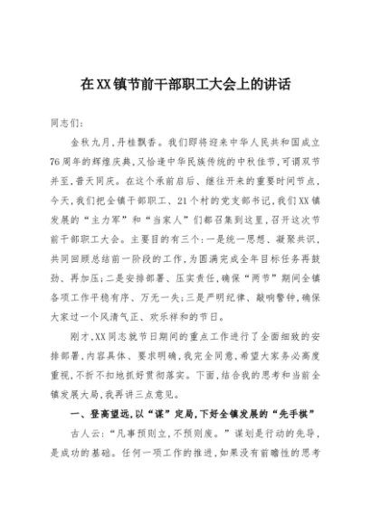 / 【七哥公文】2025年:在XX镇节前干部职工大会上的讲话+更多免费公文+VX:QiGeGongWen2024