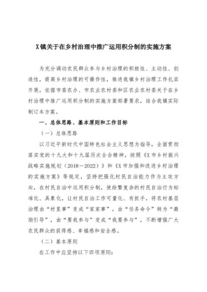 / 【七哥公文】2025年:X镇关于在乡村治理中推广运用积分制的实施方案+更多免费公文+VX:QiGeGongWen2024