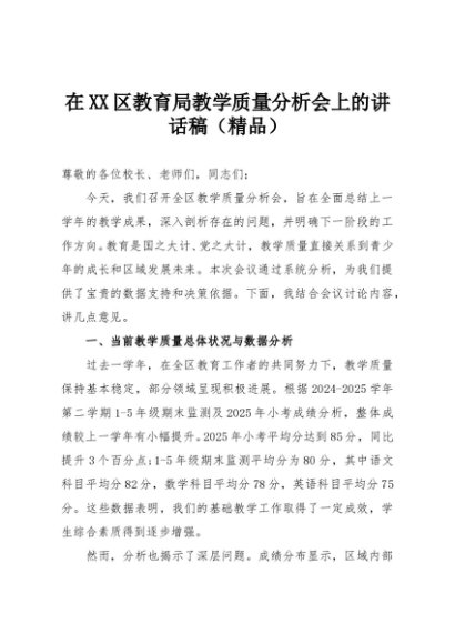 / 【七哥公文】2025年:在XX区教育局教学质量分析会上的讲话稿(精品)+更多免费公文+VX:QiGeGongWen2024