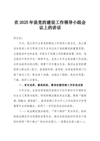 / 【七哥公文】2025年:在2025年县党的建设工作领导小组会议上的讲话+更多免费公文+VX:QiGeGongWen2024