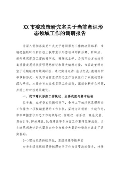 【七哥公文】2025年:XX市委政策研究室关于当前意识形态领域工作的调研报告+更多免费公文+VX:QiGeGongWen2024