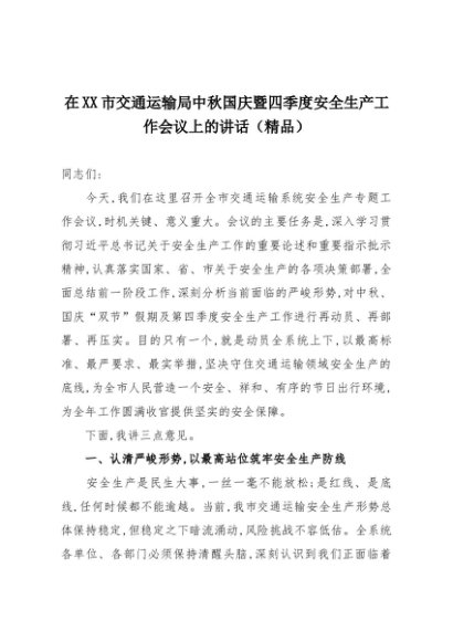 【七哥公文】2025年:在XX市交通运输局中秋国庆暨四季度安全生产工作会议上的讲话(精品)+更多免费公文+VX:QiGeGongWen2024