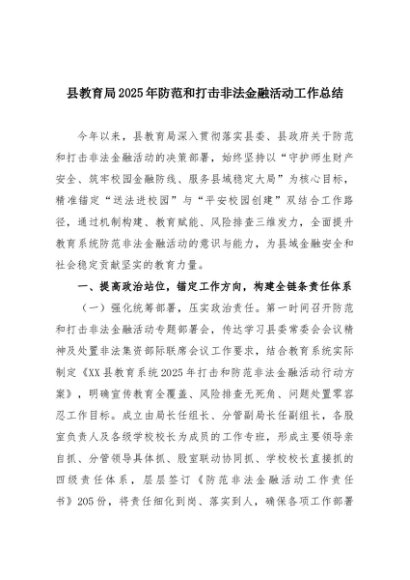 【七哥公文】2025年:县教育局2025年防范和打击非法金融活动工作总结+更多免费公文+VX:QiGeGongWen2024