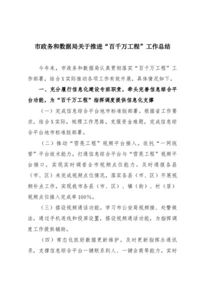 / 【七哥公文】2025年:市政务和数据局关于推进“百千万工程”工作总结+更多免费公文+VX:QiGeGongWen2024
