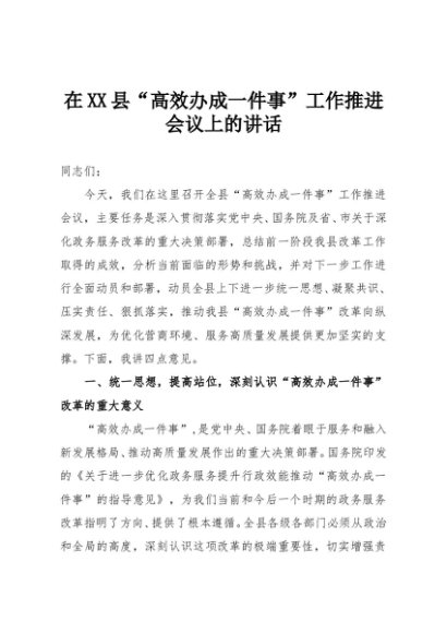 / 【七哥公文】2025年:在XX县“高效办成一件事”工作推进会议上的讲话+更多免费公文+VX:QiGeGongWen2024