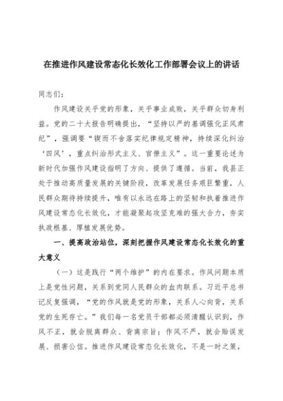 / 【七哥公文】2025年:在推进作风建设常态化长效化工作部署会议上的讲话+更多免费公文+VX:QiGeGongWen2024