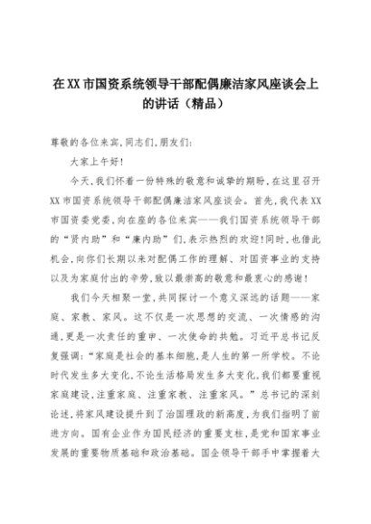 【七哥公文】2025年:在XX市国资系统领导干部配偶廉洁家风座谈会上的讲话(精品)+更多免费公文+VX:QiGeGongWen2024