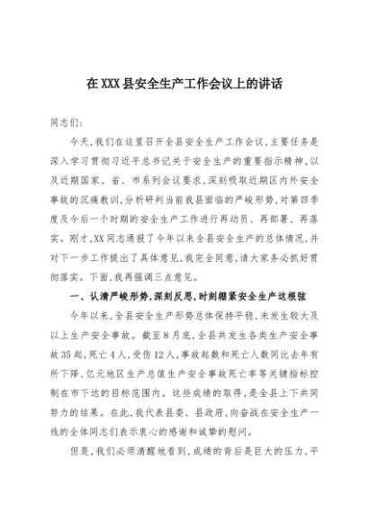 / 【七哥公文】2025年:在XXX县安全生产工作会议上的讲话+更多免费公文+VX:QiGeGongWen2024