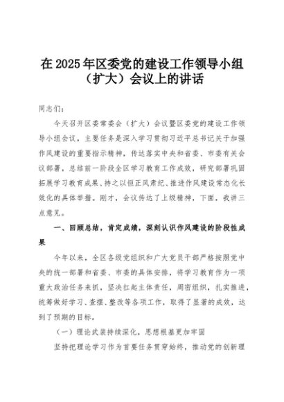 【七哥公文】2025年:在2025年区委党的建设工作领导小组(扩大)会议上的讲话+更多免费公文+VX:QiGeGongWen2024
