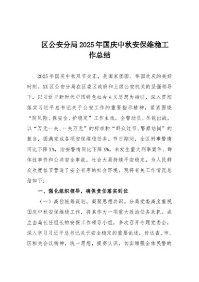 / 【七哥公文】2025年:区公安分局2025年国庆中秋安保维稳工作总结+更多免费公文+VX:QiGeGongWen2024