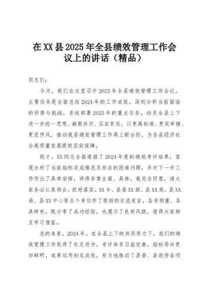 【七哥公文】2025年:在XX县2025年全县绩效管理工作会议上的讲话(精品)+更多免费公文+VX:QiGeGongWen2024
