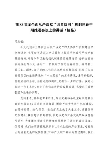 【七哥公文】2025年:在XX集团全面从严治党“四责协同”机制建设中期推进会议上的讲话(精品)+更多免费公文+VX:QiGeGongWen2024