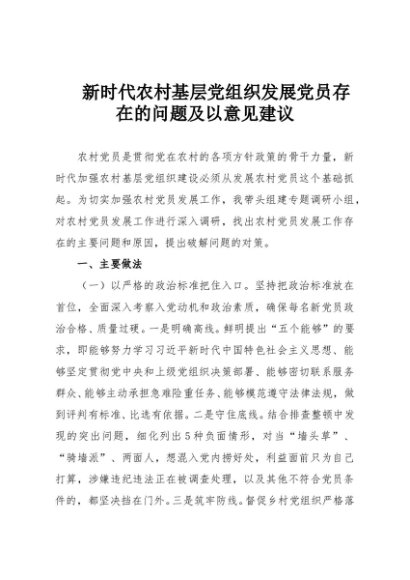 【七哥公文】2025年:新时代农村基层党组织发展党员存在的问题及以意见建议+更多免费公文+VX:QiGeGongWen2024