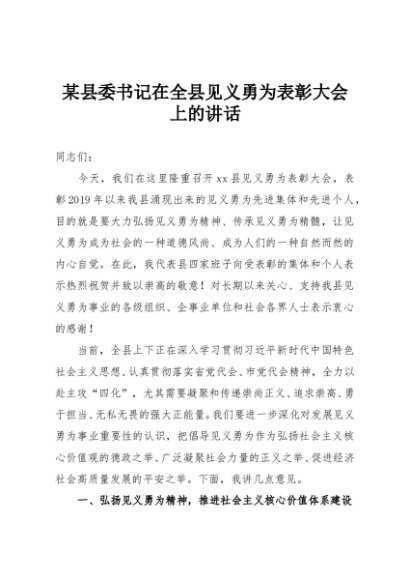 / 【七哥公文】2025年:某县委书记在全县见义勇为表彰大会上的讲话+更多免费公文+VX:QiGeGongWen2024