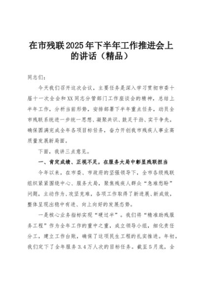 / 【七哥公文】2025年:在市残联2025年下半年工作推进会上的讲话(精品)+更多免费公文+VX:QiGeGongWen2024