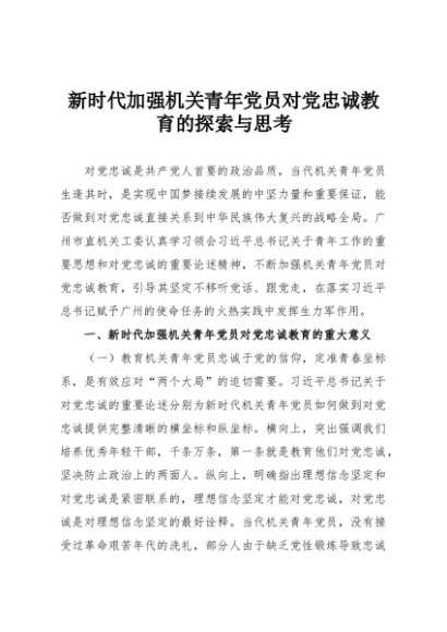 【七哥公文】2025年:新时代加强机关青年党员对党忠诚教育的探索与思考+更多免费公文+VX:QiGeGongWen2024