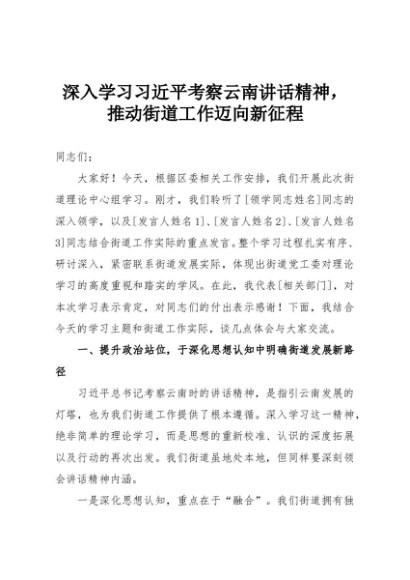 【七哥公文】2025年:深入学习习近平考察云南讲话精神,推动街道工作迈向新征程+更多免费公文+VX:QiGeGongWen2024