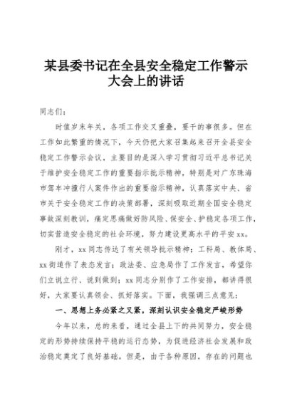 / 【七哥公文】2025年:某县委书记在全县安全稳定工作警示大会上的讲话+更多免费公文+VX:QiGeGongWen2024