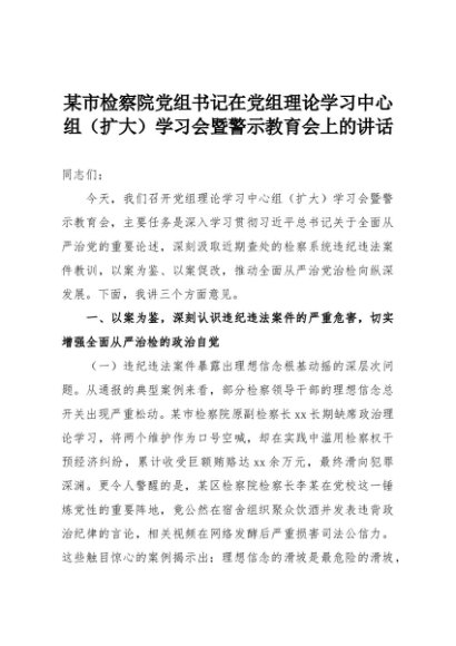 【七哥公文】2025年:某市检察院党组书记在党组理论学习中心组(扩大)学习会暨警示教育会上的讲话+更多免费公文+VX:QiGeGongWen2024