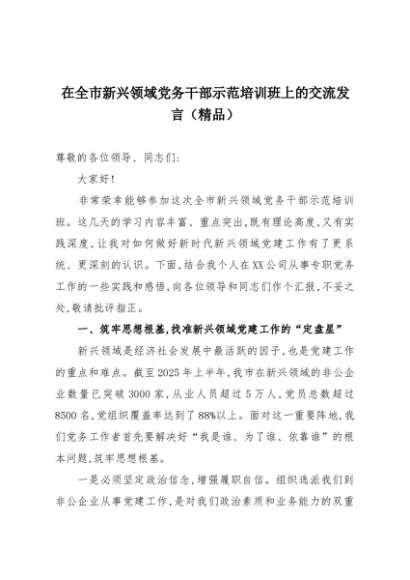【七哥公文】2025年:在全市新兴领域党务干部示范培训班上的交流发言(精品)+更多免费公文+VX:QiGeGongWen2024