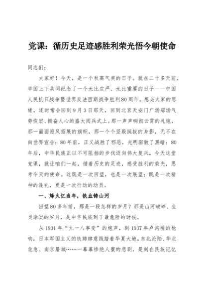 / 【七哥公文】2025年:党课:循历史足迹感胜利荣光悟今朝使命+更多免费公文+VX:QiGeGongWen2024