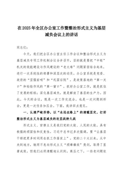 【七哥公文】2025年:在2025年全区办公室工作暨整治形式主义为基层减负会议上的讲话+更多免费公文+VX:QiGeGongWen2024
