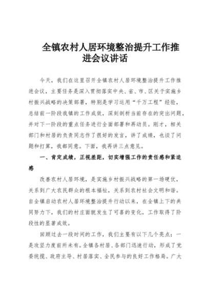 / 【七哥公文】2025年:全镇农村人居环境整治提升工作推进会议讲话+更多免费公文+VX:QiGeGongWen2024