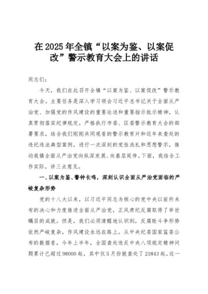 【七哥公文】2025年:在2025年全镇“以案为鉴、以案促改”警示教育大会上的讲话+更多免费公文+VX:QiGeGongWen2024