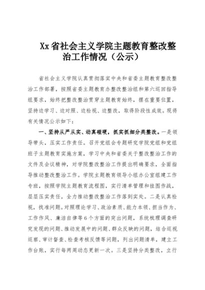 【七哥公文】2025年:Xx省社会主义学院主题教育整改整治工作情况(公示)+更多免费公文+VX:QiGeGongWen2024