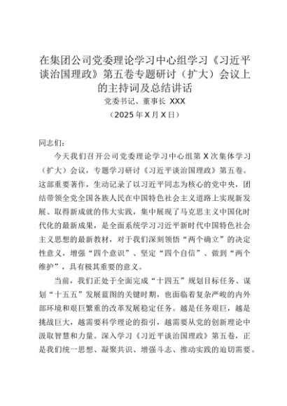 【七哥公文】2025年:党建原创:20250098 《习近平谈治国理政》第五卷专题研讨(扩大)会议上的主持词及总结讲话+更多免费公文+VX:QiGeGongWen2024