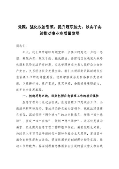 【七哥公文】2025年:党课:强化政治引领,提升履职能力,以实干实绩推动事业高质量发展+更多免费公文+VX:QiGeGongWen2024