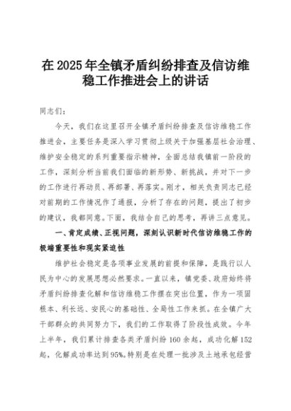 【七哥公文】2025年:在2025年全镇矛盾纠纷排查及信访维稳工作推进会上的讲话+更多免费公文+VX:QiGeGongWen2024