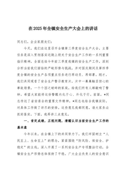 / 【七哥公文】2025年:在2025年全镇安全生产大会上的讲话+更多免费公文+VX:QiGeGongWen2024