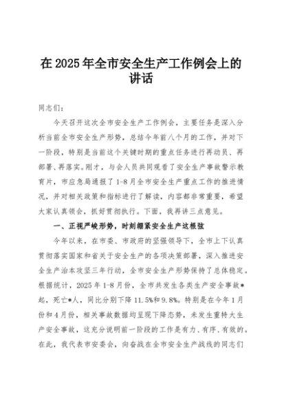 / 【七哥公文】2025年:在2025年全市安全生产工作例会上的讲话+更多免费公文+VX:QiGeGongWen2024