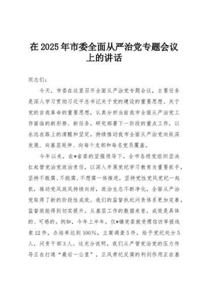 / 【七哥公文】2025年:在2025年市委全面从严治党专题会议上的讲话+更多免费公文+VX:QiGeGongWen2024
