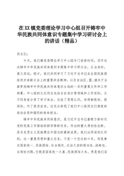 【七哥公文】2025年:在XX镇党委理论学习中心组召开铸牢中华民族共同体意识专题集中学习研讨会上的讲话(精品)+更多免费公文+VX:QiGeGongWen2024