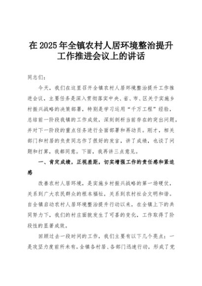 【七哥公文】2025年:在2025年全镇农村人居环境整治提升工作推进会议上的讲话+更多免费公文+VX:QiGeGongWen2024