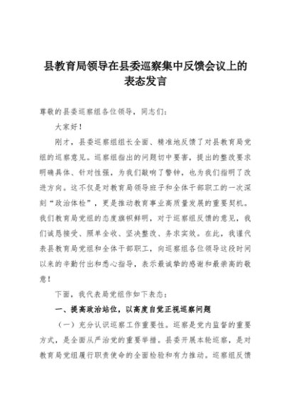 / 【七哥公文】2025年:县教育局领导在县委巡察集中反馈会议上的表态发言+更多免费公文+VX:QiGeGongWen2024
