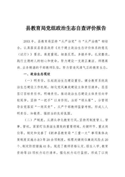 / 【七哥公文】2025年:县教育局党组政治生态自查评价报告+更多免费公文+VX:QiGeGongWen2024