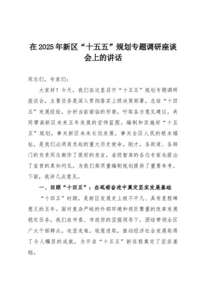 【七哥公文】2025年:在2025年新区“十五五”规划专题调研座谈会上的讲话+更多免费公文+VX:QiGeGongWen2024