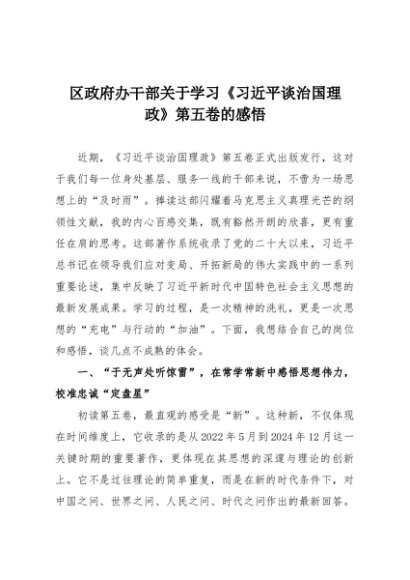 【七哥公文】2025年:区政府办干部关于学习《习近平谈治国理政》第五卷的感悟+更多免费公文+VX:QiGeGongWen2024