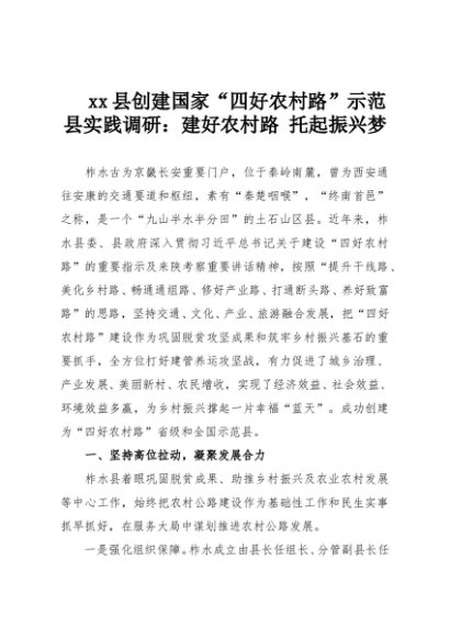 【七哥公文】2025年:xx县创建国家“四好农村路”示范县实践调研:建好农村路 托起振兴梦+更多免费公文+VX:QiGeGongWen2024