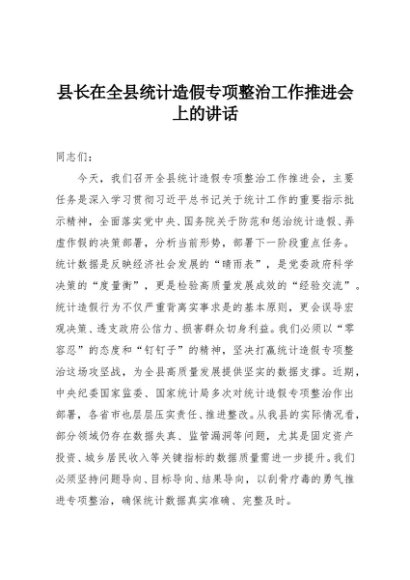 / 【七哥公文】2025年:县长在全县统计造假专项整治工作推进会上的讲话+更多免费公文+VX:QiGeGongWen2024