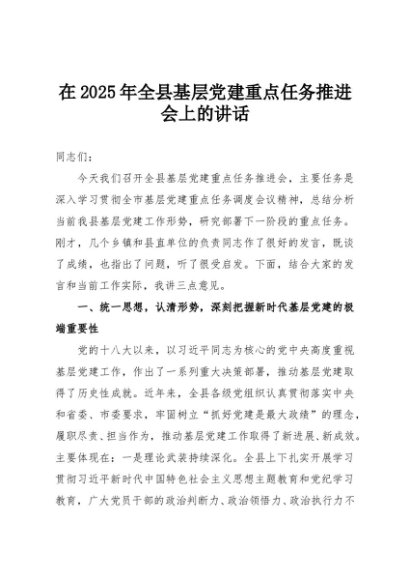 / 【七哥公文】2025年:在2025年全县基层党建重点任务推进会上的讲话+更多免费公文+VX:QiGeGongWen2024