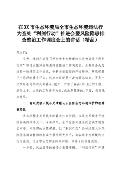 【七哥公文】2025年:在XX市生态环境局全市生态环境违法行为查处“利剑行动”推进会暨风险隐患排查整治工作调度会上的讲话(精品)+更多免费公文+VX:QiGeGongWen2024