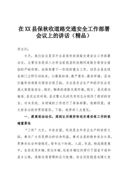 【七哥公文】2025年:在XX县保秋收道路交通安全工作部署会议上的讲话(精品)+更多免费公文+VX:QiGeGongWen2024