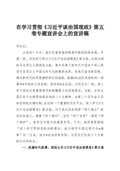 【七哥公文】2025年:在学习贯彻《习近平谈治国理政》第五卷专题宣讲会上的宣讲稿+更多免费公文+VX:QiGeGongWen2024