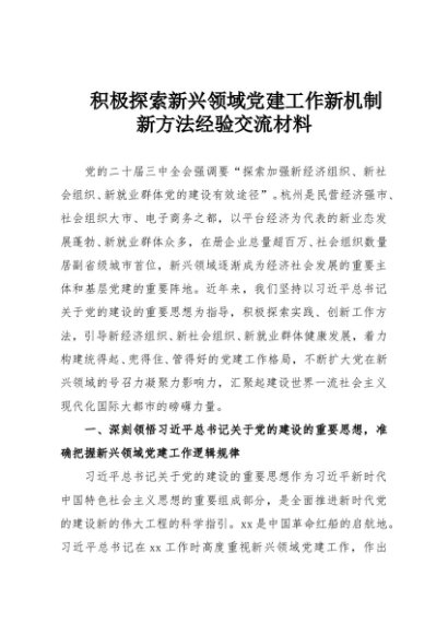 / 【七哥公文】2025年:积极探索新兴领域党建工作新机制新方法经验交流材料+更多免费公文+VX:QiGeGongWen2024